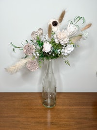 Do you have a favorite bottle of wine that you wanted to save but don’t know what to do with the empty bottle? This arrangement is perfect to add to a new or used bottle!