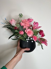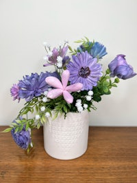 Floral arrangement in a large pot.