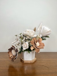 Flowers are made from a soft foam-like wood and individually hand dyed. Made from a fast growing plant, the flowers are sustainable and eco friendly. They never wilt or die making them perfect for gifts or low maintenance home decor.