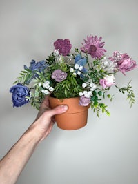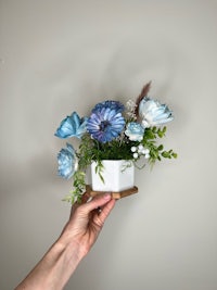 Flowers are made from a soft foam-like wood and individually hand dyed. Made from a fast growing plant, the flowers are sustainable and eco friendly. They never wilt or die making them perfect for gifts or low maintenance home decor.